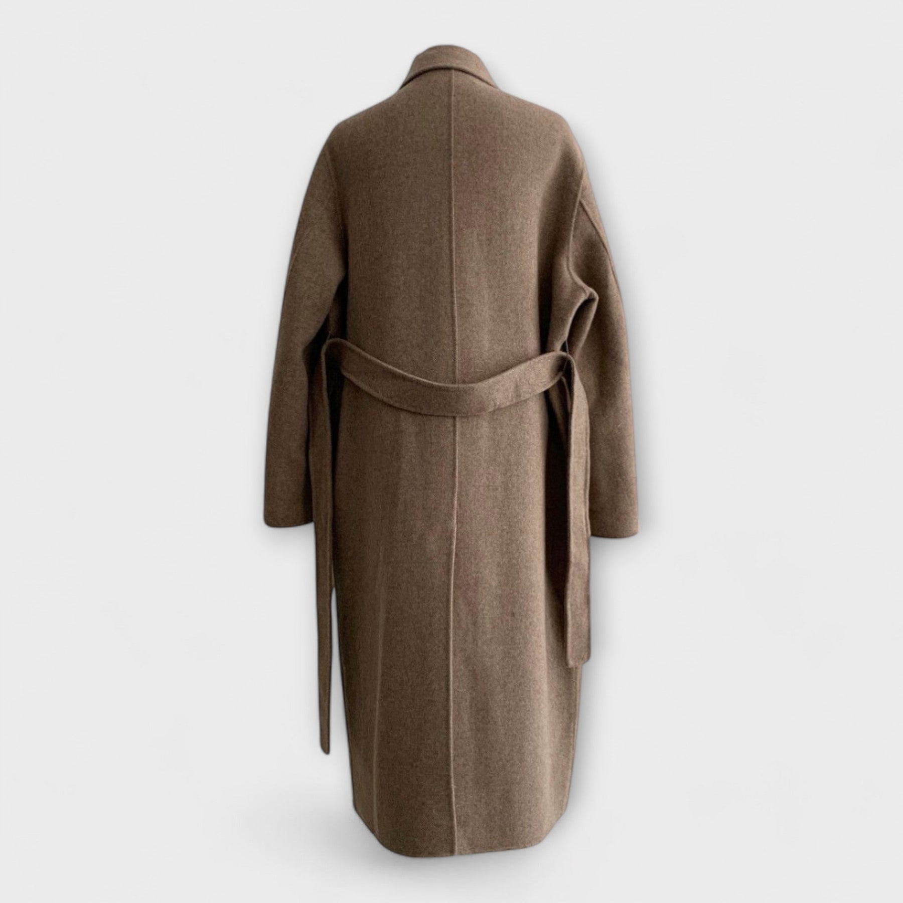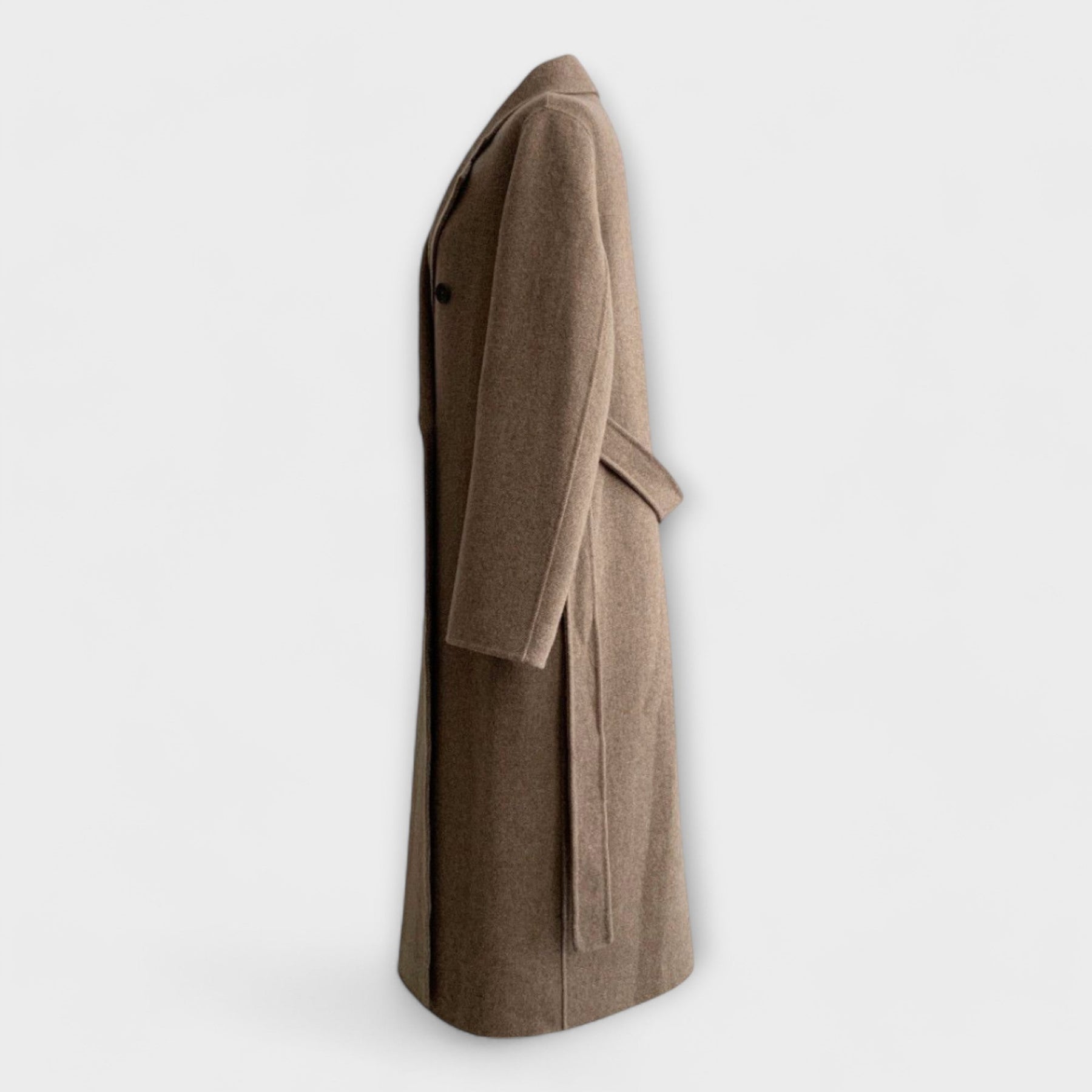 Ez a hosszú kabát tökéletesen ötvözi a klasszikus stílust az ellenállhatatlan melegséggel. Sofisztikált gallérral, elegáns gombokkal és praktikus övvel rendelkezik, így kifinomult sziluettet biztosít, miközben a hidegebb napokon is kellemes komfortot nyújt. Ideális a mindennapokra és különleges alkalmakra egyaránt, mivel a funkcionalitást és az időtlen eleganciát ötvözi.